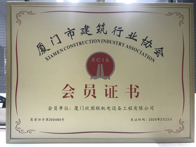 廈門市建筑行業(yè)協(xié)會(huì)會(huì)員證書